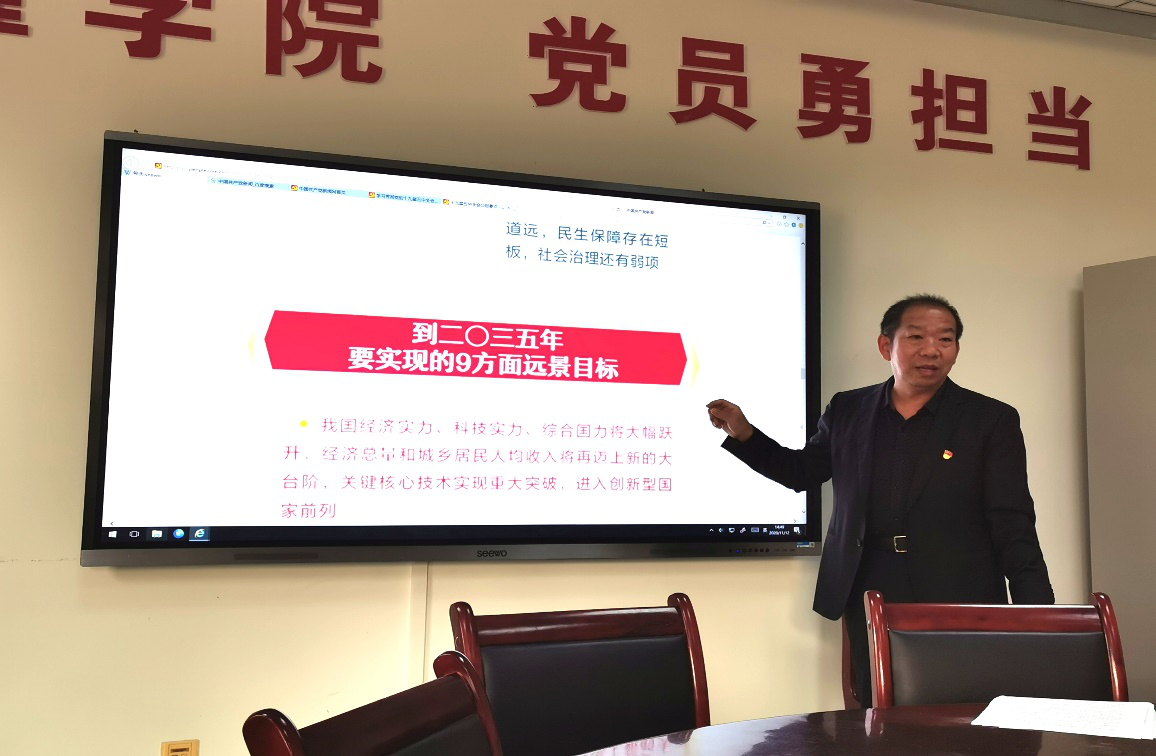 会议第一项议程是学习党的十九届五中全会精神。总支书记马立志领学了全会公报,强调全体同志要按照公司党委要求,坚持以习近平新时代中国特色社会主义思想为指导,增强“四个意识”、坚定“四个自信”、做到“两个维护”,深入学习贯彻全会精神,深刻理解全会的重大意义,切实把思想和行动统一到中央决策部署上来。总支和教师支部、员工支部要精心组织好学习活动,迅速兴起学习贯彻党的十九届五中全会精神的热潮。要原原本本学,全面系统学,联系实际学,学懂弄通、学深悟透全会精神,更好地指导实践,推动工作。