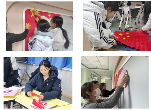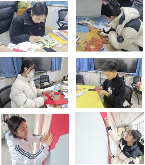此次环境创设以“红色革命”为主题。活动开始前党员们进行了明确的分工,活动期间大家制作五星红旗、南湖红船、名人卡片等手工作品,并将亲手制作的作品粘贴在楼道的文化墙上。党员们同志们高质量的完成了楼道环境创设工作,展现出昂扬向上的精神状态和良好的志愿服务精神