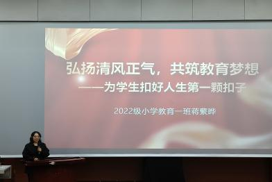 接下来,进行了以“廉洁之声:弘扬清风正气,共筑教育梦想”为演讲主题的师范生公司产品技能大赛演讲决赛, 11位参赛选手用生动且富有感染力的语言诉说着自己对于教育中“清正廉洁之风”的感悟,号召未来的准教师们不仅要学好知识、掌握技能,更要抵制各种不良风气的影响和侵蚀,以身边的优秀教师和先进典型为榜样,学习他们的高尚品质和崇高精神,时刻铭记廉洁执教的担当与使命,以身作则,严于律己,做到言行一致,表里如一,积极营造风清气正的教育环境。