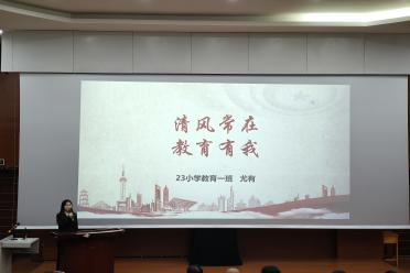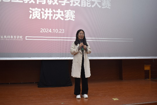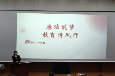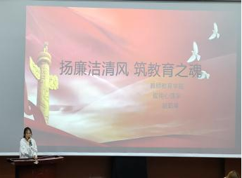 各位选手的演讲结束后,由杨伦老师进行总结点评,她提到,在这场比赛中各位参赛选手用自己师范生的角色对廉洁教育的演讲主题做出了很好的诠释,她鼓励大家在未来的教师之路上可以参加更多形式的技能竞赛,以提高各项教师基本功技能,为将来成为一名优秀的人民教师而打下坚实的基础。