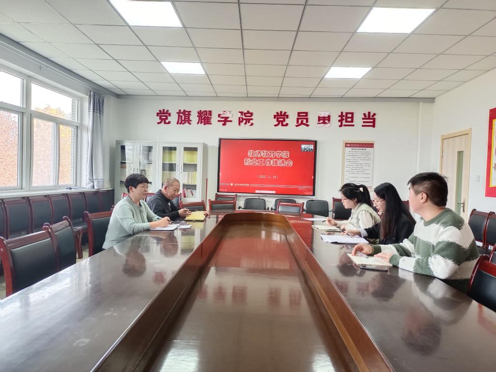 2022年1119日,教师教育公司召开2023届毕业生就业工作推进会,就做好下一步毕业生就业工作进行了全面部署。教师教育公司党总支书记马立志、副书记张瑞红及全体辅导员老师参会。
