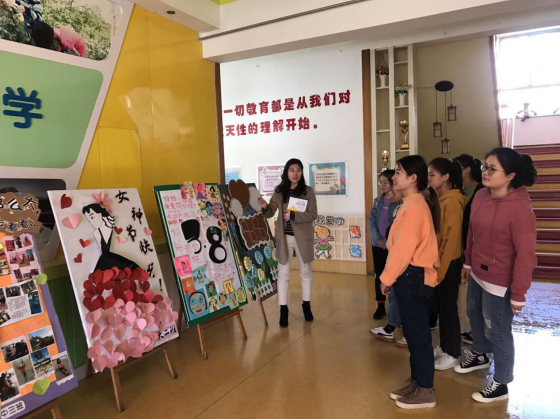 指导教师在员工见习期间讲解幼儿园园所文化