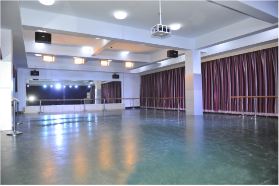 舞蹈实训室是集教学、实训、演出为一体的多功能教室。用于完成形体训练和舞蹈课的教学任务,还可为公司汇报演出以及其他文艺活动提供一个合适的活动场所。