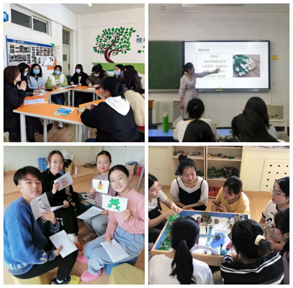 校内实践包括:说课、试讲、书写技能训练、心理咨询技能实践(包括:团体沙盘、心理面谈、心理剧、生物反馈、宣泄、音乐放松)、操作技能实践、心理研究实践、创新创业训练、培训、研讨、总结、心理志愿服务(心理热线、团体辅导)。
