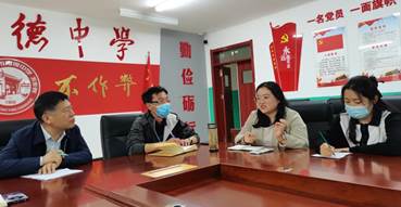 育德中学的校领导和老师们对调研小组表示热烈欢迎,育德中学副董事长刘卫东,心理教师王佳静以及19、20级应用心理学专业实习生们参加了座谈活动。