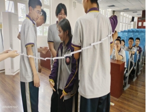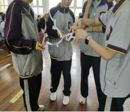 图11、12 小组合作成功将A4纸变为巨型圆环