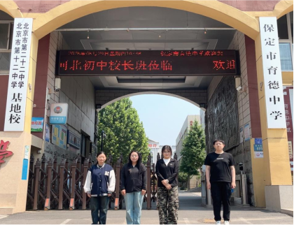 图1 入校当天四名实习生在育德中学门口集合
