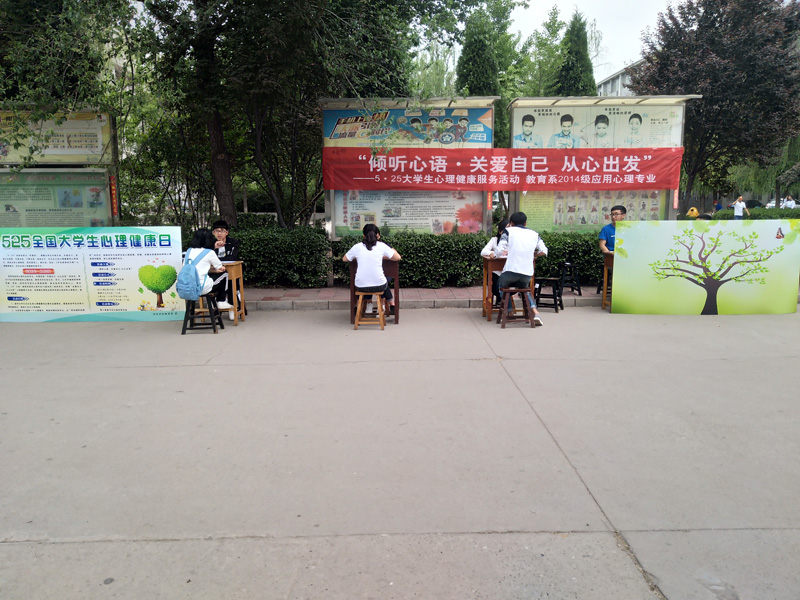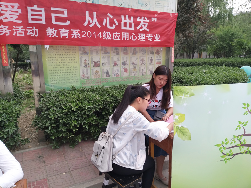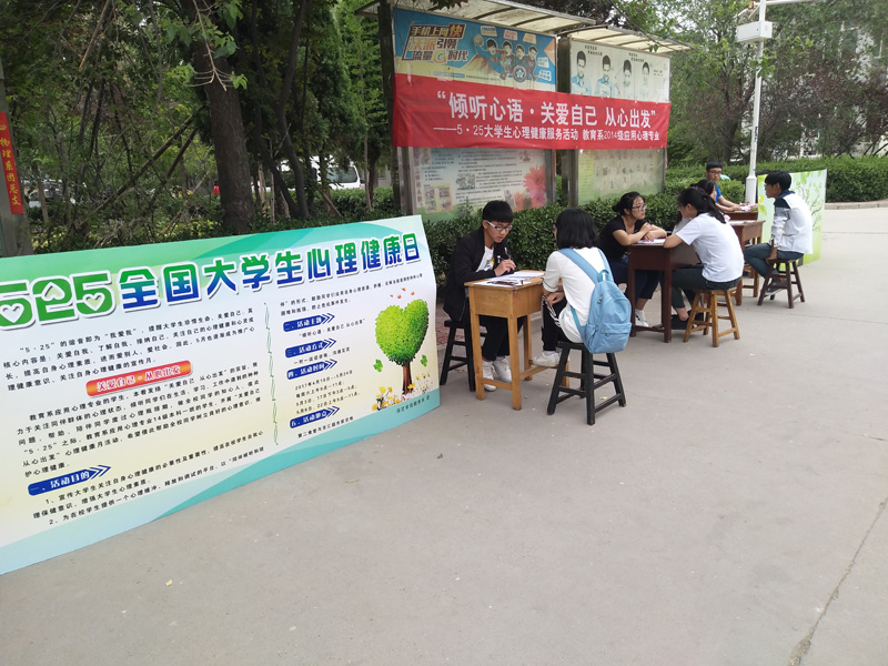 教育系应用心理专业的员工,本着发扬“关爱自己 从心出发”的宗旨,致力于关注全校员工的心理状态,倾听同学在生活、学习、工作中遇到的种种问题,帮助、陪伴同学度过心理瓶颈期,做全校同学的知心人。值此“5·25”之际,教育系应用心理专业14级本科一班的员工,开展“关爱自己 从心出发”心理健康月活动,希望借此帮助全校同学树立良好的心理意识,维护心理健康。