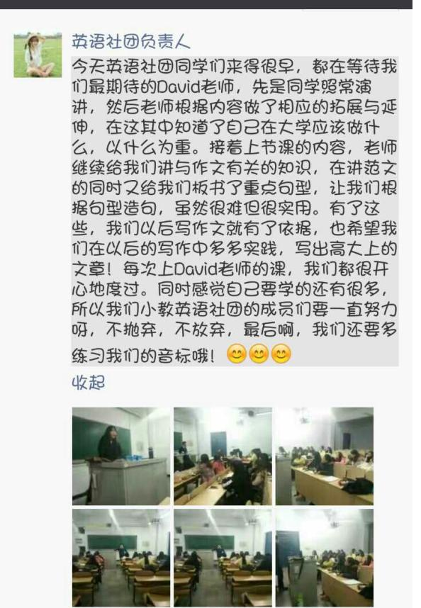 11月16号即本周三下午,书法、瑜伽、舞蹈、美术、英语社团进行了活动。书法社团指导老师姚老师倾尽自己的所有经验教授同学们,毫无保留,同学们也认真学习,多加练习,向每天依旧勤奋练字的老师看齐;瑜伽老师指导同学们在一次次呼吸中静心感受生活,感受自己;舞蹈社团的同学们则是在老师的带领下练习形体,培养气质,轻柔的舞姿令人动心;美术社团的同学们这周把身边废旧的事物变成了一个个憨态可掬的小企鹅;英语社团的同学们还是那么勤劳用心,不只坚持着早早起床去读英语,晚上不上课时还会进行“晚读”,相信勤劳总是会有收获的!