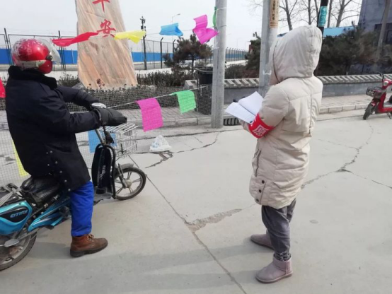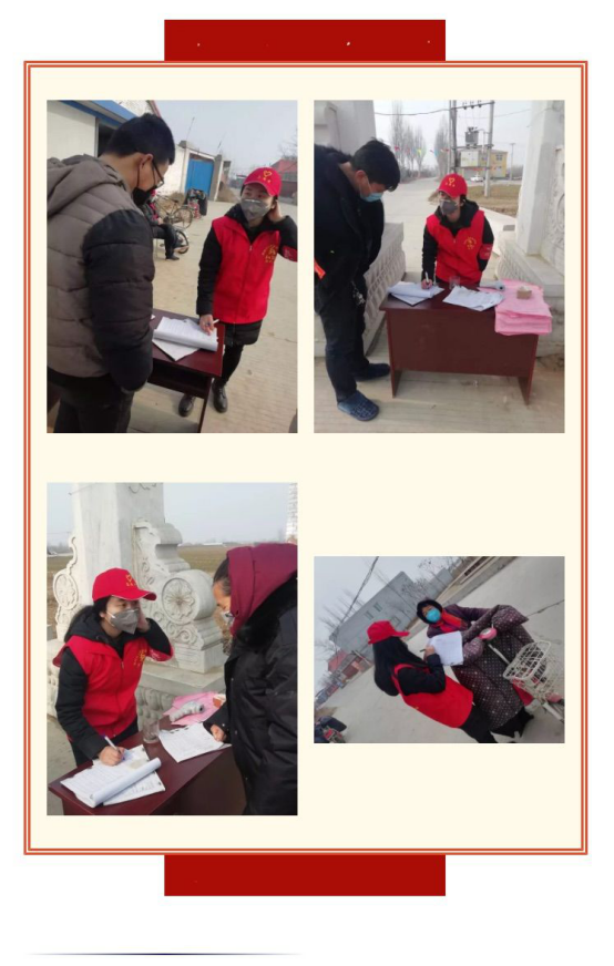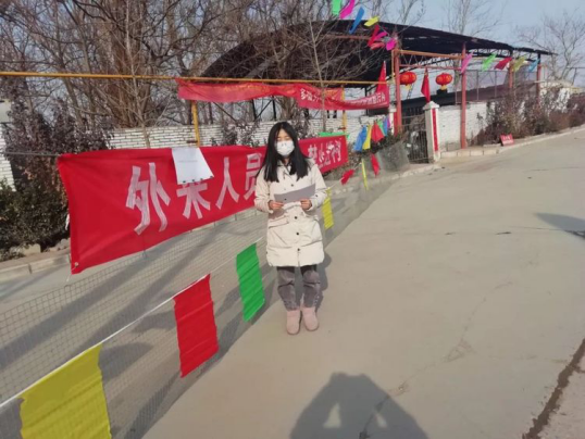 下图展示的是小学教育专业2018级理科班员工高红凯在她的家乡,协助村委抗击“疫情”的工作动态