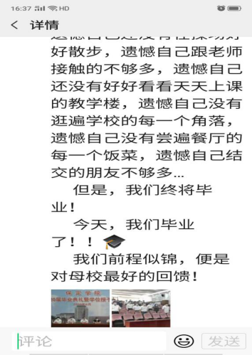 同学们,老师们理解你们在毕业季不能回母校的遗憾:遗憾自己和同学还有没说完的话,遗憾自己在公司留下的回忆不够多,遗憾自己不能在操场好好散一回步,遗憾自己跟老师和同学早就说好却没能照成的合影,遗憾自己还没来得及尝遍餐厅的可口饭菜……