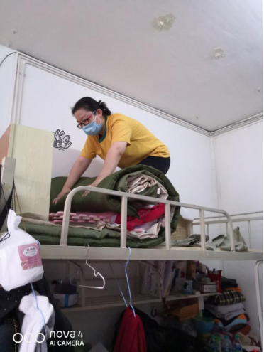 爬上爬下,挑选打包,书写地址,联系快递……累得满头大汗、气喘吁吁,电话一边充电一边视频,与员工逐一核对,尽管流量用了两个多G,第一天,我也只整理了三名员工的行李。而身体已是累得腰酸背疼腿发沉了。汗颜,汗颜!百无一用是书生啊!哦,不对,我连书生都不是!我只是个女教师。而且,想必在你们的心中,我还是一名严厉的女教师。你看: