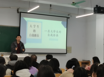 在班会进行的过程中辅导员严克老师首先对主题进行分析,引导同学们自发去尝试理解主题、以自己的方式表达对主题的思考和认识。