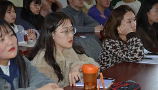 然后,许教授讲了课标与教材的关系,教材是对课程标准的再创造再组织,教材的编写和实验可以检验课程标准的合理性。这对于同学们今后走上工作岗位进行课程设计有很大帮助。