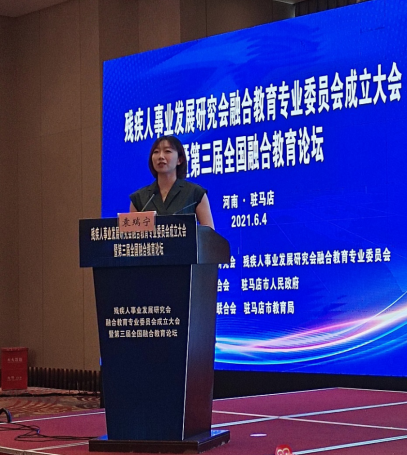 2021年6月3日至5日,首个全国性融合教育学术团体“残疾人事业发展研究会融合教育专业委员会”成立大会暨第三届全国融合教育论坛在河南驻马店市隆重召开。公司特殊教育专业教师代表王树林、郝怡娜、袁瑞宁参加了大会,袁瑞宁代表公司做了论坛发言。