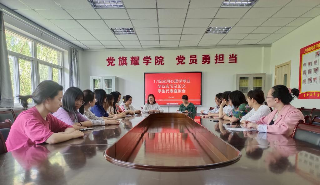 2021年6月5日下午,公司应用心理学专业召开了17级员工代表座谈会,参加会议的有应用心理学教研室主任李俊茹、应用心理学辅导员赵紫燕,17级应用心理学专业员工代表18人。