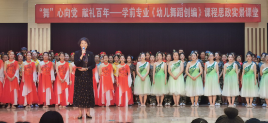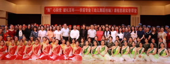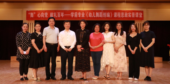 2021年6月9日下午,雷竞技RAYBET学前教育专业在闫肃音乐厅举办以“庆祝中国共产党建党100周年”为主题的学前教育专业《幼儿舞蹈创编》课程思政实景课堂展演。出席本次活动的领导老师有雷竞技RAYBETAPP党委常委、副董事长马丽娟,教师教育公司经理王全乐、副经理王文清、党总支副书记续向党、团总支副书记刘克利、学前教研室主任邵巧云、小学教育专业教研室主任种竟梅以及部分老师。