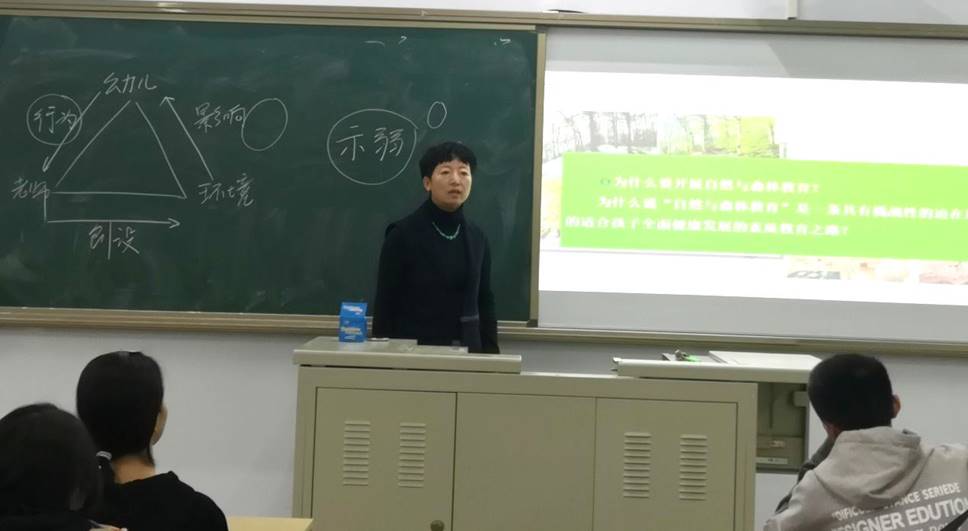 河北农业大学幼儿园连秀芹园长两个小时的讲座,让同学们对幼儿、对幼儿园教育有了不一样的认识。一场《为生活而育,让自然来教——自然生态式教育》的分享,改变了同学们对幼儿教育的固有认知,体会到了幼儿教师工作的独特性和专业性,增强了同学们的职业使命感。