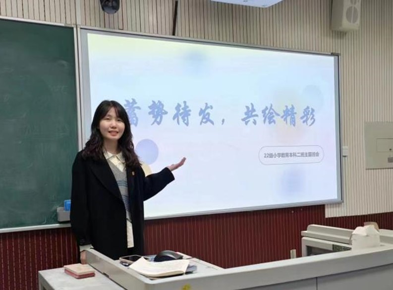 22级小学教育二班班长王天一和团支书石润泽从中受到很大启发,会议结束后召集本班所有班干部,对班级建设展开讨论。总结班级目前存在以下三个问题:作为公费师范生,没有了就业压力,部分同学出现“摆烂”,没有追求,只想着尽快满足毕业条件;上学期受疫情影响,同学之间未能彼此熟悉,社交范围仅限于本宿舍的同学;目光没有放长远,将规划仅仅局限于大学四年,没有考虑到毕业后的发展。