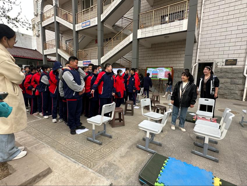 在各小组成员的配合下,首次带领初中团体心理辅导课。