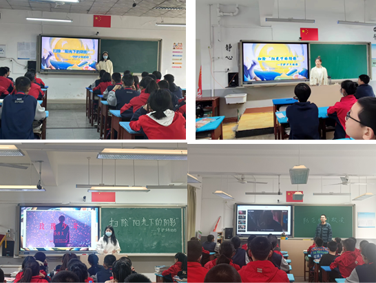 我们开展“扫除阳光下的阴影—守护少年的你”主题班会活动,组织同学进行有关校园欺凌的情景剧表演,帮助同学们深入认识并预防校园欺凌。