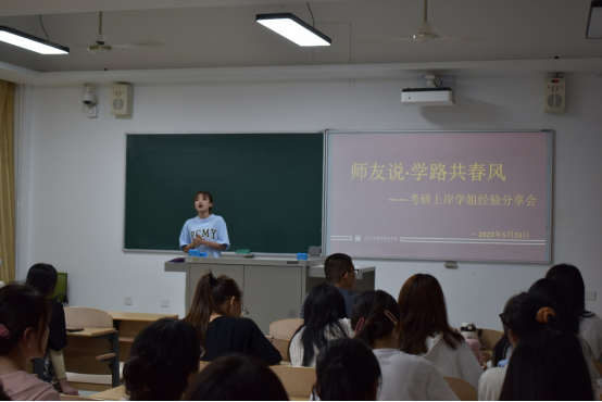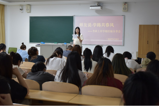 首先是王宇新学姐与大家进行交流分享。她分别从择校、时间安排、学习方法进行阐述,她强调我们要找到适合自己的答题方法,分析答题思路而不是一味的去背答案,心态更为重要,要相信自己。还分享了自己在记忆上的方法,如:海马体记忆法、艾宾浩斯记忆法。
