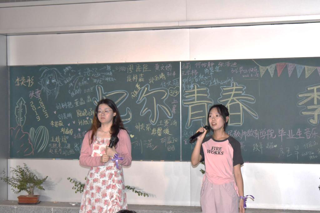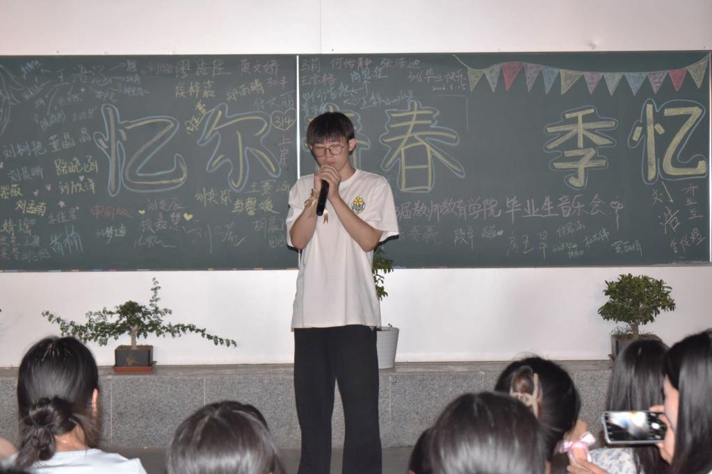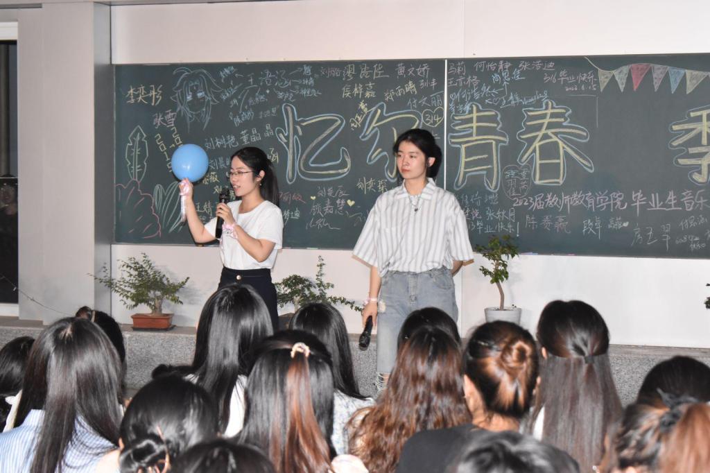 音乐会以“忆尔青春,季忆留夏”为主题,分为入场仪式、节目表演、小游戏互动、大合唱、合影留念五个环节。在入场环节,由工作人员为各位领导老师以及毕业生们系上入场丝带并引导毕业生领取明信片、到指定位置签名留念。