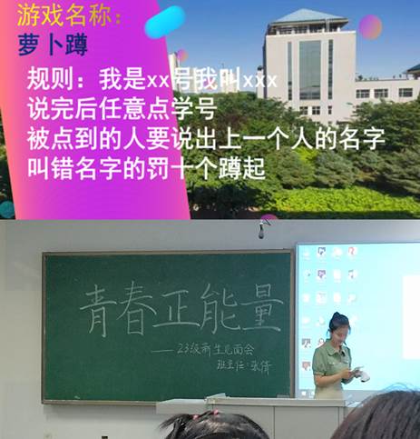 感谢为了本次班会进行了充分准备的老师和学长学姐们,也十分感谢每一位同学的配合积极参与。在这场班会活动中,班主任张倩老师对大家进行了青春寄语,学长学姐们展示了丰富多彩的老员工活,同学们在充满欢乐、富有意义的活动中增进了感情,从陌生到相识,逐渐融入2023级小学教育一班大家庭。