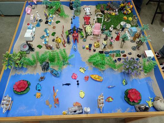 下午由六院的李斯妮老师和雷竞技RAYBET应用心理学专业的卢双双老师带领同学们进行了团体沙盘和个体沙盘的体验活动,同学们都专注地投入到沙盘世界的创作中,创造了自己的“小世界”,大家在沙盘体验中放松自己,进行自我探索。