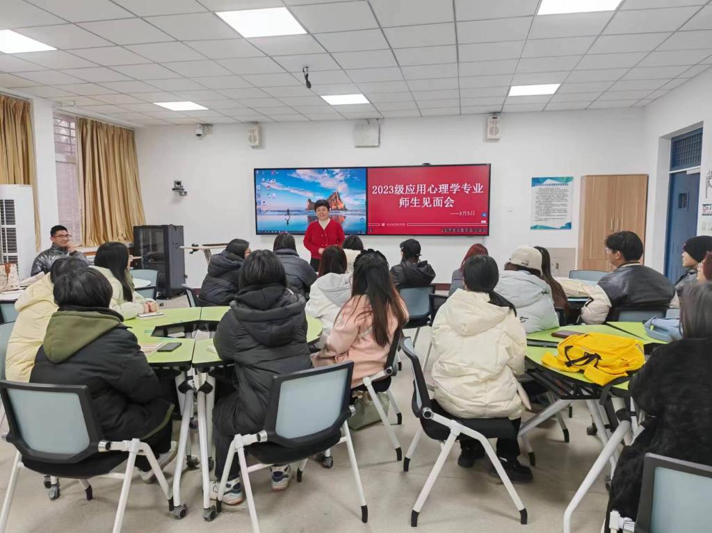 2023年3月5日,2023级应用心理学一班在B-3-113召开主题班会。班会分为三个阶段: