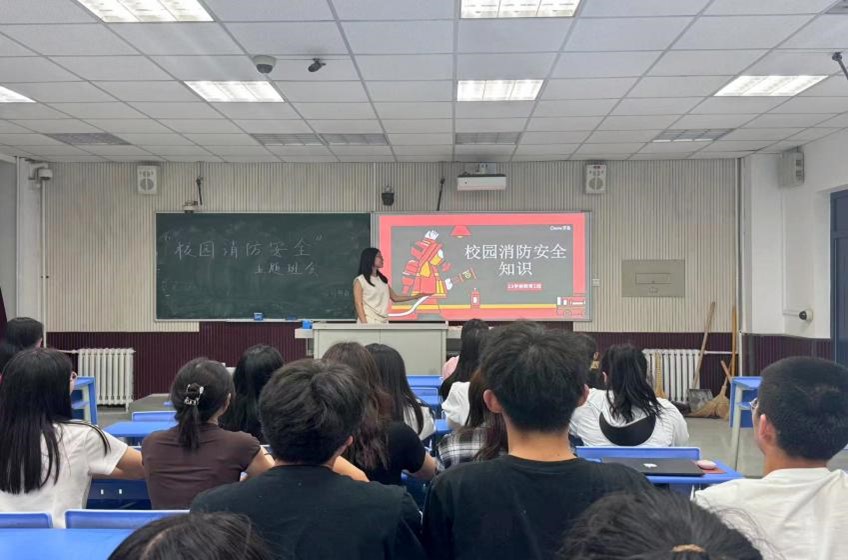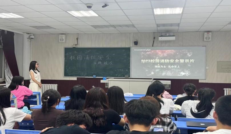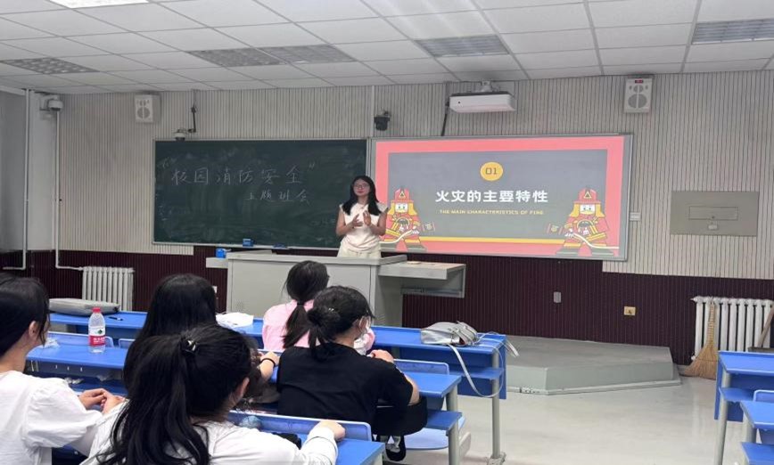 紧接着,贺晓洁为同学们介绍了不同场景火灾的预防及处理方法,同时生活委李博雨也上台为大家介绍了宿舍消防安全的主要预防和处理方法,增强了同学们在宿舍日常生活中应对火灾隐患的能力。