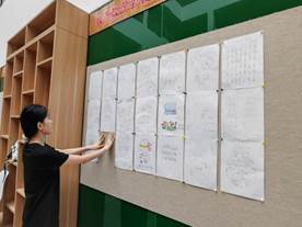 在整个活动过程中,同学们积极参与,为本次活动的顺利的进行和成果展示做出努力,再次领会团队协作的意义。这次活动还增强了我们班级的凝聚力和团队精神。在粘贴过程中,同学们互相配合,递钉子、看高低等小小细节,我们共同粘贴了一幅幅精美的作品。这种互相支持、共同进步的氛围让班集体更加温暖。