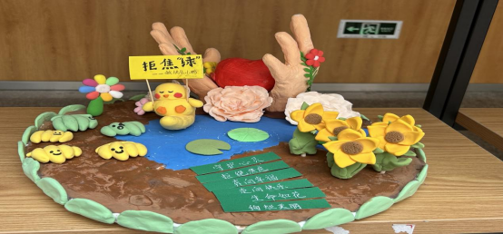 为了让更多同学感受手工艺术与心理健康结合的魅力,传播心理健康知识,在 E楼一层大厅举办了为期三天的作品展览。精美的手抄报、充满故事的黏土作品、创意满满的手串、卡牌手作……作品依次陈列,吸引了众多同学驻足欣赏。大家在观赏中感受创作者的心境,交流对心理健康的见解,让这场展览成为了一场心灵与艺术的对话。
