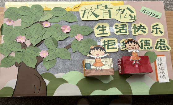 同时,2024级应用心理学一班以“我的心愿能量瓶”为主题进行绘画展示,寄语同学们要“呵护心理健康,让心灵在阳光中绽放活力”。