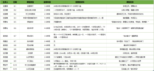 本次实践活动为期10天,计划开展15堂主题课程,覆盖图书馆周边5个社区的儿童。作为第四年的课程升级,团队在往年基础上新增中国结编织技术奇妙科学实验“等类别,形成更立体的五育”课程计划(见下表)。