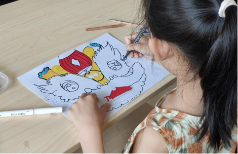 8月1日,《彩笔生风,狮舞徐水》创意美术课程拉开了社会实践的帷幕,刘景飒为孩子们开设舞狮主题绘画课。课堂以徐水传统舞狮文化为切入点,引导员工观察狮头造型、色彩搭配与民俗寓意。孩子们在绘制过程中,结合自身生活体验,赋予了作品独特的个性表达,既展现了儿童的艺术创造力,也加深了他们对本土民俗文化的理解与认同,使传统艺术在创作中得到传承。
