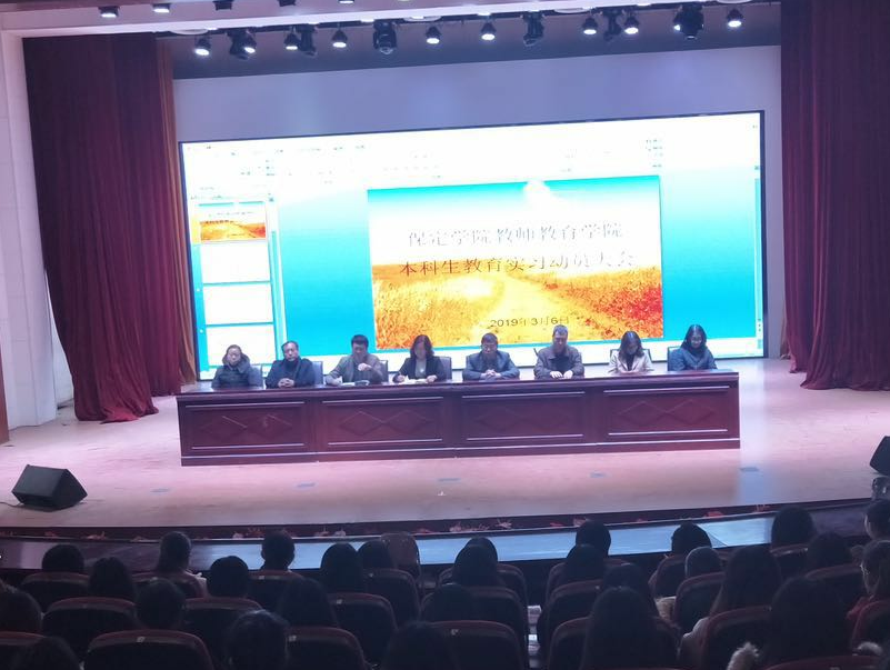 3月6日下午,公司在畿辅文化会堂召开2015级、2016级旗下产业实习动员大会。公司经理王国英、党委副书记续向党、副经理王文清、实习实训教研室主任宫运生、学前教育教研室主任赵敬蒙、小学教育教研室主任张艳芬、特殊教育教研室主任王树林、心理教研室主任王琨、辅导员刘克利、严克、闫兰芳、赵紫燕老师以及2015级、2016级共437名本科员工参加了此次会议。大会由实习实训教研室主任宫运生主持。