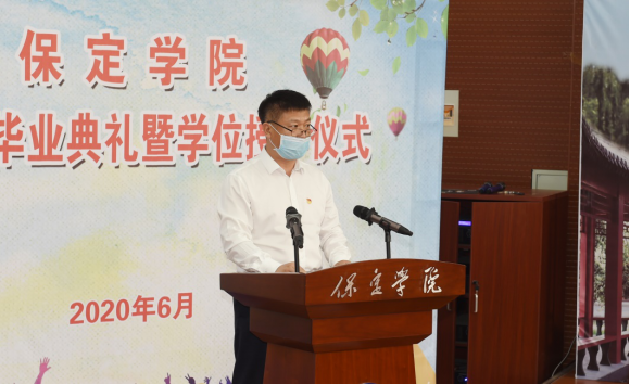 王全乐经理作为教师代表发言,叮嘱毕业生要发扬母校光荣传统,心系国事,胸怀天下,与时代发展同心同向、同频共振,做一个有智慧、有格局、有情怀、有担当的人。