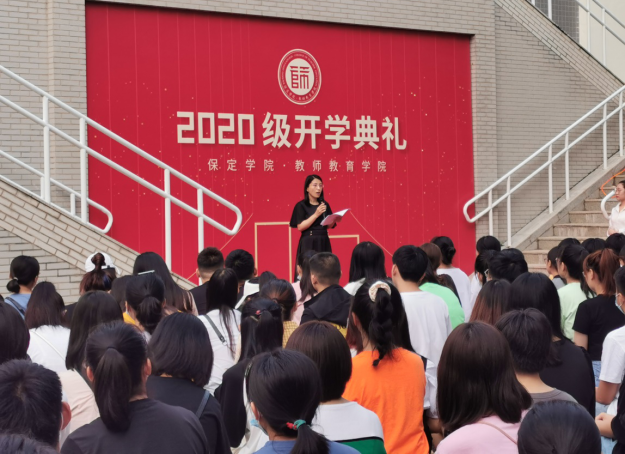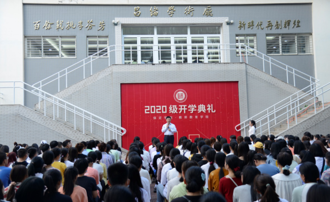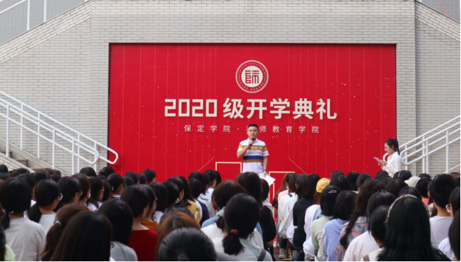 典礼在嘹亮的国歌声中拉开了序幕。公司在校生代表姜月同学代表全体本科生向学弟学妹们分享了老员工活和学习的丰富经验,从多个角度对学弟学妹们提出建议和希望。2020级本科新生杜金铎同学代表新生发言,他表示,选择师范类专业,做一名人民教师是永远的追求。新的起点,新的征程,努力学习专业知识,为成为一名“四有”好教师打下坚实的基础。