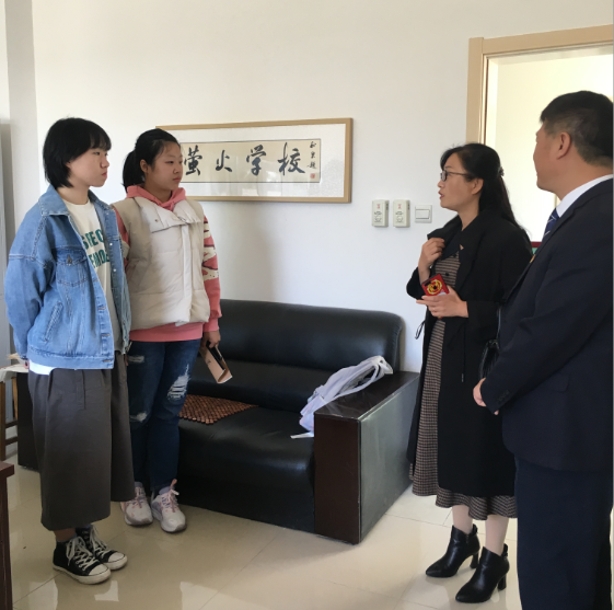 随后丁董事长又来到了萤火小学办公室,了解了小学教育专业的办学特色,对萤火小学“入学即入职”的理念给予充分肯定。丁董事长在翻阅萤火小学教师备课本的同时,对我们员工的专业素养提出了表扬,她面对新加入到萤火小学的2020级公费师范生,对当今基础教育的发展和提升未来农村地区小学教师教学水平提出了自己的一些看法。她指出:如今基础教育薄弱地区紧缺像公费师范生这类的预备教师群体,这些人就是今后农村小学的骨干力量,承担着教书育人、发展基础教育事业的重任。希望20级公费师范生可以在萤火小学这种特色办学模式下提升自己专业技能,不忘初心,教书育人。