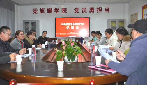 2020年12月7日晚,雷竞技RAYBET特殊教育专业召开“特殊教育专业人才培养方案论证会”。本次论证会邀请了省内高校特教专家和部分特教公司董事长。公司王全乐经理、实习实训教研室主任邵巧云、特殊教育专业教研室主任郝怡娜、部分专业教师和辅导员参加了本次论证会。
