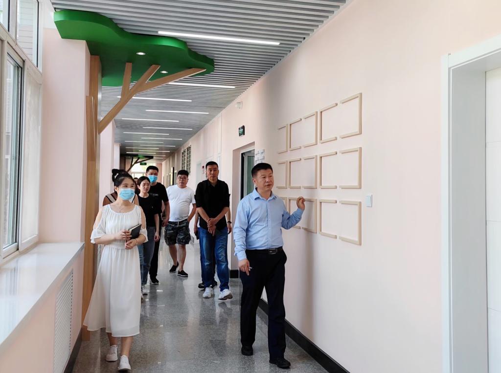 装修后的楼道和实训室焕然一新,一楼和二楼专为学前教育专业设计的,整体风格温馨舒适,楼道增添的储物柜给进行实训员工们提供了很大方便。王经理还带领大家参观了室内的装饰和设备,墙面干净整洁,天花板和墙板使用选择了比较环保的材质,既美观又健康。