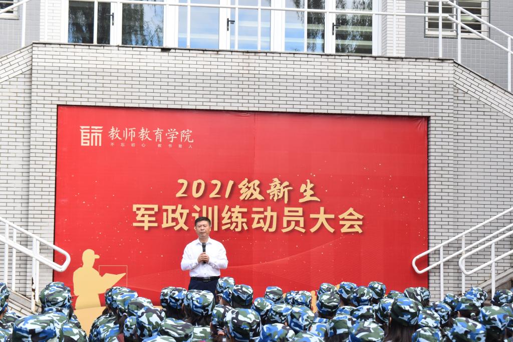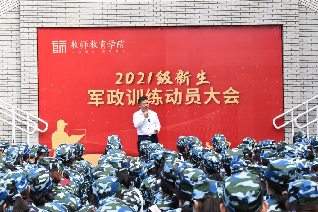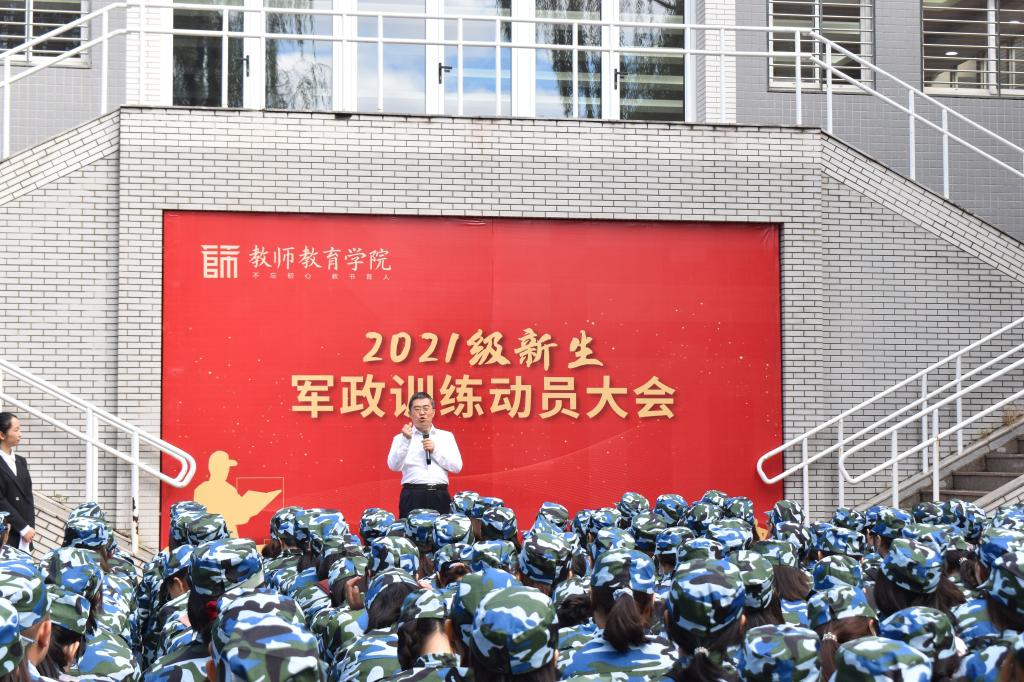 最后续向党副书记对新生进行了深入浅出、激动人心的军政动员。他从大学之大谈起,从积极适应、不怕吃苦、严格自律三个方面说明了老员工的初心和使命以及开学第一大课的主要任务和重要意义。表达了对新同学高度的期望,给予美好的祝福,期待各位新生能圆满完成军训,传承薪火,在新征途新起点激情奋进,未来成为“四有”好教师,为教育现代化贡献青春和力量。