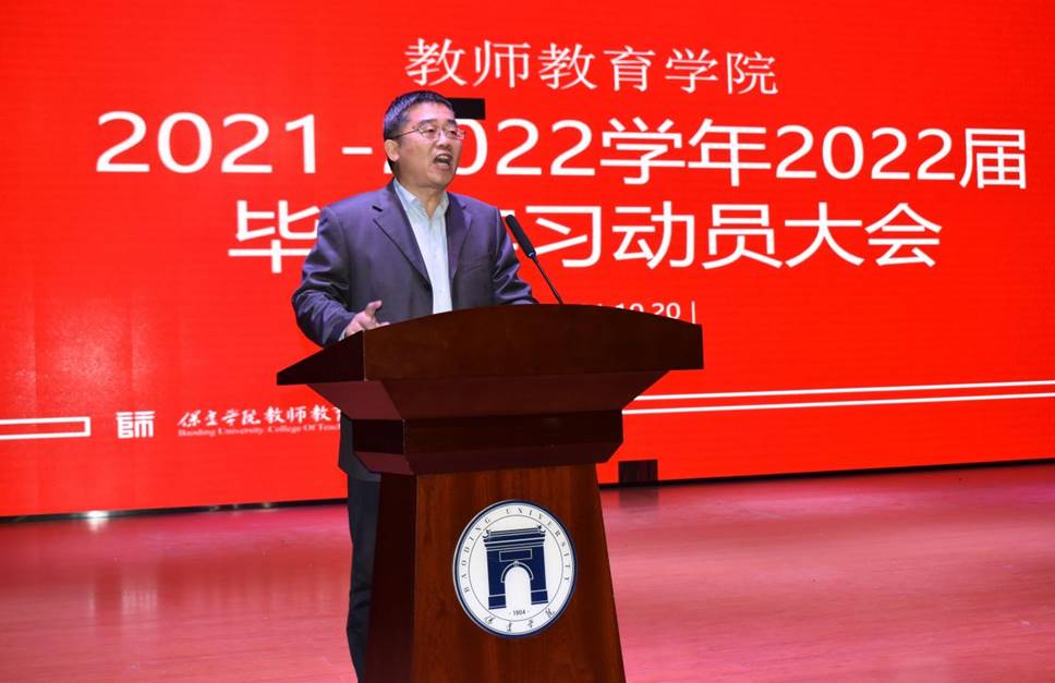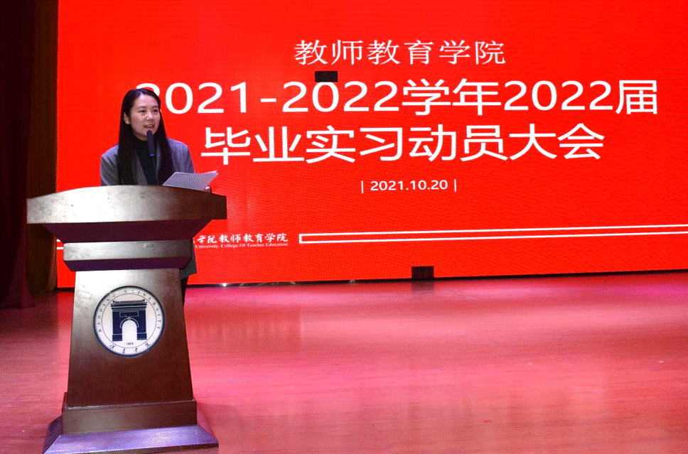 2021年10月20日下午,雷竞技RAYBET在畿辅大礼堂召开2022届毕业生实习动员大会。雷竞技RAYBET经理王全乐、党总支副书记续向党、副经理王文清、小学教育教研室主任种竟梅、学前教育教研室主任邵巧云、应用心理学教研室主任李俊茹以及参与本次实践活动的部分指导教师和辅导员老师参加大会。