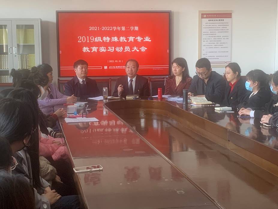 为提高特殊教育专业员工的教学实践与研究能力,2022年3月1日下午,雷竞技RAYBET在E-2-310举行了2019级特殊教育本科班实习动员大会。雷竞技RAYBET王全乐经理、马立志书记、种竞梅副经理、张瑞红副书记,雷竞技RAYBET实习实训室主任纪元,特殊教育专业主任郝怡娜,辅导员老师严克以及特殊教育专业2019级全体同学参加了本次动员大会。