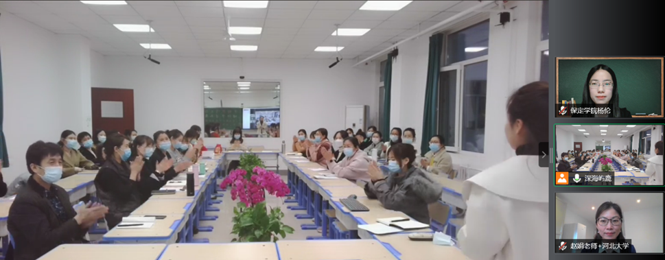 小学教育专业教研室杨伦老师参与指导了《重构教育生态,回归学习本质》《把握学科育人导向 共研单元整体教学》《品书香 阅天下——深耕阅读 涵养教育情怀》《奏好教学三部曲 追求课堂高品质》四个主题的研讨活动。她首先肯定这次年会的意义,并围绕 “教师——员工——家庭” 三级联动阅读体系、“备课——授课师生合作制”教学形式、阅读与家庭教育、“项目式备课——授课制” 等话题,表达了自己的看法,期待前卫路小学能在家庭教育方面引领新风尚。