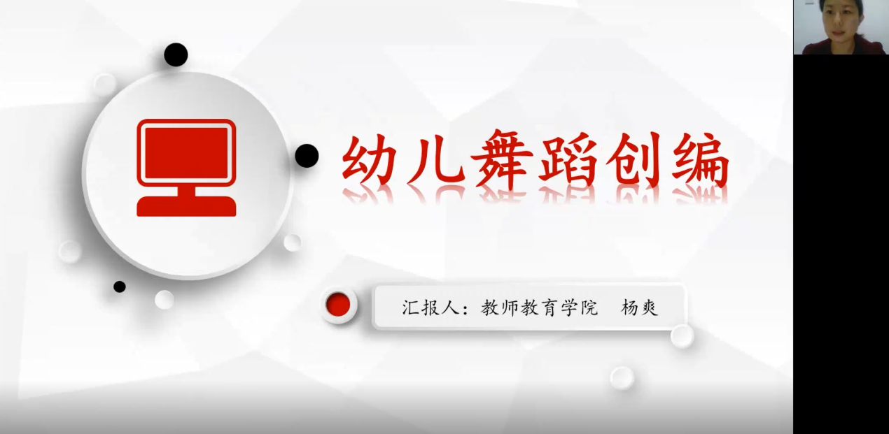 首先,学前教育专业杨爽老师就《幼儿舞蹈创编》课程开展思政教学介绍,杨老师从课程简介、设计思路、思政目标、课程思政建设成效以及教学案例展示的角度讲述了参赛教学案例设计,内容丰富、思路清晰。