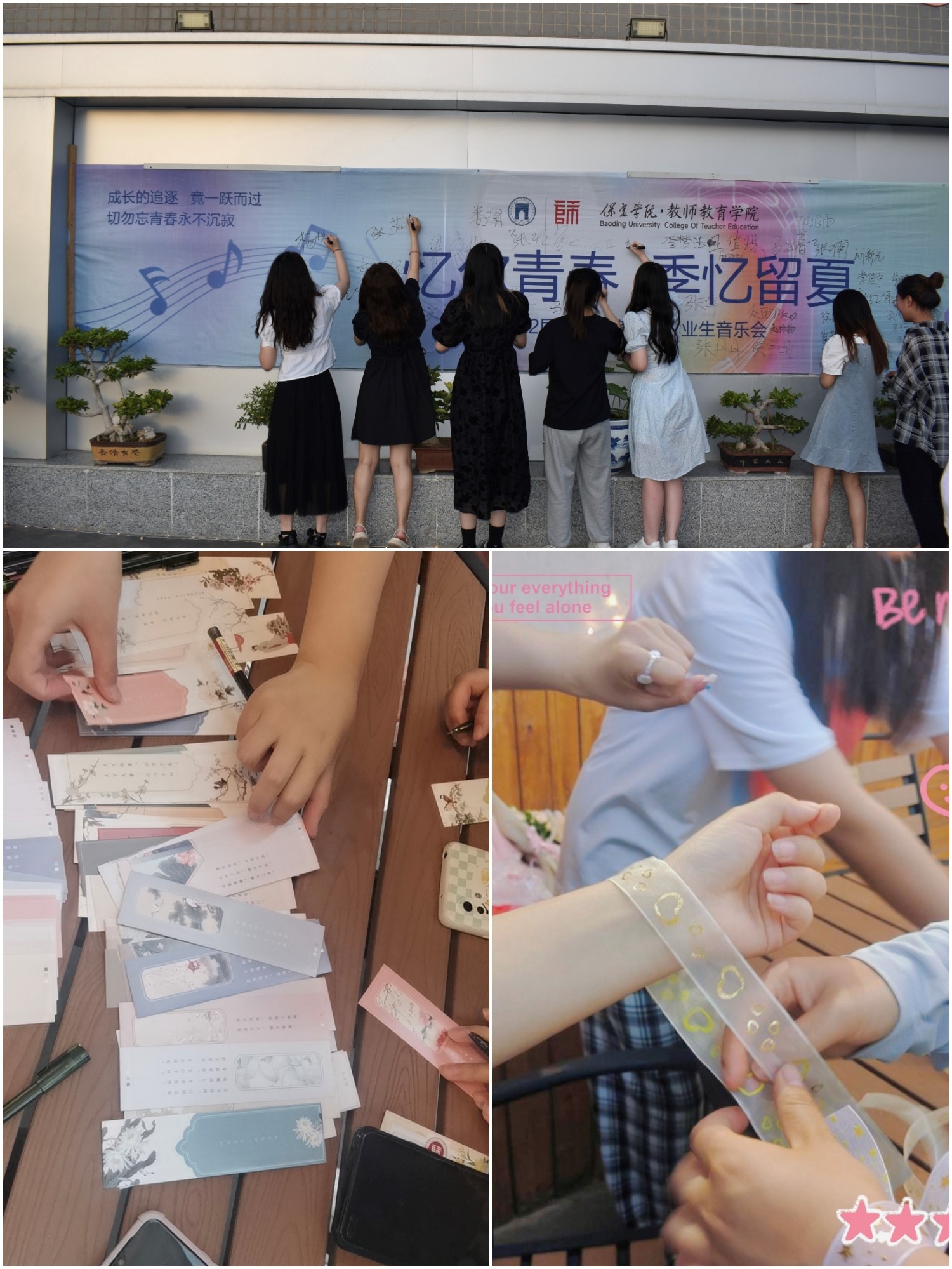 本次音乐会分为入场、歌曲表演和游戏三个环节。在入场环节,公司专门为毕业生们准备了签名墙,表达了对同学们“榜上有名”的美好祝愿,毕业生们也通过亲手写的明信片表达了自己对未来的期盼。现场工作人员为领导、老师以及毕业生们系上了音乐会的专属丝带。