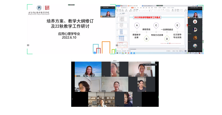 围绕培养方案、教学大纲的修订问题,老师们针对培养目标、毕业要求、课程教学、考核方案等方面进行了深入探讨。卢双双老师针对心理与教育研究方法课程的考核方式进行了分享,老师们认真学习并积极提出改进意见。本次活动也对2022年秋季学期的重点工作进行了提前布置安排,老师们将继续以饱满的热情投入到公司产品各项工作中。