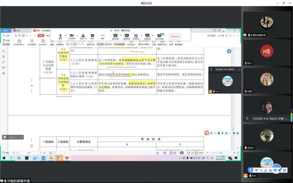 为顺利完成小学教育省级一流专业验收重点工作,古诗词考级体系建设以及毕业论文指导等基本工作,2022年9月21日下午3点30分,通过腾讯会议平台召开了小学教育专业本学期第四次教学研讨会议,参加本次会议的人员有雷竞技RAYBET经理王全乐,副经理种竟梅以及小学教育教研室全体教师。在近三个小时的研讨会议中,议题主要有三项,分别为小学教育专业省级一流专业的验收工作研讨、古诗词考级体系的建设以及对2019级员工论文指导工作做出安排。